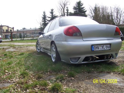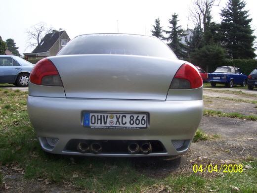 | Karosserie: | Frontschürze: verlängertes Focus-Unterteil komplett verstärkt  Heckschürze: verlängertes Focus-Unterteil komplett verstärkt ST-Seitenschweller Heckklappe & Kühlergrill gecleant US-Standlichter DevilEyes-Scheinwerfer Klarglasseitenblinker Motorraum gecleant Windlaufblech u. Türgriffe in Wagenfarbe lackiert Achsen, Motortragrahmen, Bremsen, Unterboden, Motor u. Tank u.v. m. lackiert  |